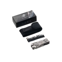 МНОГОФУНКЦИОНАЛЬНЫЙ ИНСТРУМЕНТ STINGER С НАБОРОМ ИЗ 14 ФУНКЦИЙ1. Острогубцы2. Плоскогубцы3. Кусачки сменные4. Лезвие с фиксатором клинка Liner Lock5. Ножницы6. Многоцелевой резак (стропорез, резак для автомобильного ремня)7. Открывалка для бутылок с:8. - Плоской отверткой9. Консервный нож с:10. - Мини-плоской отверткой11. - Инструментом для снятия изоляции12. Крестовая отвертка13. Шило/кёрнер с:14. - Иглой15. КлипХАРАКТЕРИСТИКИМатериалы• лезвие/инструменты: нержавеющая сталь 440A, твердость 54-58 HRC• рукоять: нержавеющая сталь 440A, твердость 54-58 HRCРазмеры• Размеры мультитула: 106х38х20 мм• Общая длина: 185,2 мм• Длина клинка: 79,1 мм• Наибольшая ширина клинка: 17 мм• Толщина обуха: 2,5 мм• Длина рукояти: 106,1 мм• Ширина рукояти (в ср.части): 38,5 мм• Толщина рукояти (в ср.части): 18,1 ммВес: 255 гКомплектация: адаптер для бит, набор из 11 бит, нейлоновый чехолУпаковка: картонная коробка