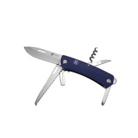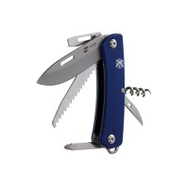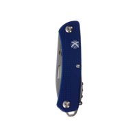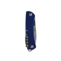 Нож перочинный STINGER имеет 10 функций:1. Лезвие2. Пила по дереву3. Открывалка для бутылок с:4. – Отверткой5. – Инструментом для снятия изоляции6. Штопор7. Шило с:8. – Иглой9. Крестовая отвертка10. Держатель для ключейХАРАКТЕРИСТИКИМатериалы• лезвие/инструменты: нержавеющая сталь 440A, твердость 54-58 HRC• рукоять: нержавеющая сталь 440A, твердость 54-58 HRC• накладки рукояти: АБС-пластикРазмеры• Размеры ножа: 103х28х19 мм• Общая длина: 175,5 мм• Длина клинка: 72,3 мм• Наибольшая ширина клинка: 19,7 мм• Толщина обуха: 2,2 мм• Длина рукояти: 103,2 мм• Ширина рукояти (в ср.части): 20,8 мм• Толщина рукояти (в ср.части): 15,8 ммВес: 147 гЦвет накладок рукояти: синийНакладки рукояти ножа не подлежат замене.Упаковка: картонная коробка