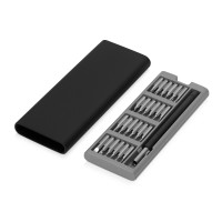 Отвертка с набором сменных насадок — лаконичная замена громоздкому комплекту отверток. 24 насадки для самых разных типов крепежа компактно хранятся в небольшом футляре, который удобно носить с собой. Замена насадки занимает считанные секунды. Минималистичный строгий дизайн превращает набор в функциональный бизнес-подарок.