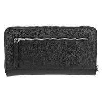 Кошелёк женский BUGATTI Linda, на молнии, чёрный, натуральная воловья кожа, 19,2х2,5х10,5 см