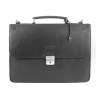 Портфель BUGATTI Romano 15'', чёрный, натуральная воловья кожа, 39х8х30 см