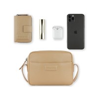 Основные характеристики Сумка кросс-боди женская BUGATTI Elsa, песочного цвета, воловья кожа/полиэстер, 19х5,5х14 см