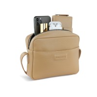 Сумка кросс-боди женская BUGATTI Elsa, песочного цвета, воловья кожа/полиэстер, 19х5,5х14 см
