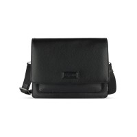 Описание Сумка через плечо женская BUGATTI Elsa, чёрная, воловья кожа/полиэстер, 25х8,5х20 см