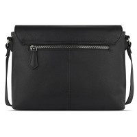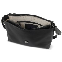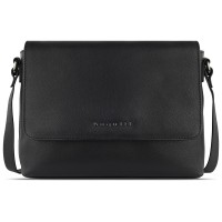 Сумка наплечная женская BUGATTI Bella, чёрная, воловья кожа/полиэстер, 25х8х20 см