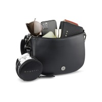 Сумка наплечная женская BUGATTI Almata, с кошельком, чёрная, полиуретан, 27х6х18,5 см