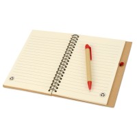 Блокнот с 60 листами переработанной бумаги 70 г/м2 и картонной ручкой в цвет блокнота.