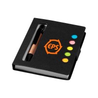Набор цветных стикеров с шариковой ручкой и блоком из 80 белых отрывных листков. Очень удобный и функциональный аксессуар для офиса, а также отличный промо-сувенир. На обложку из уплотненного картона возможно нанесение логотипа вашей компании.