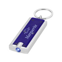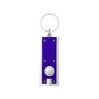 Брелок с ярким светодиодным фонариком с кнопкой. Металлическое кольцо для ключей. Батарейки включены в комплект. АБС-пластик.