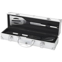 Набор для барбекю 3 предмета. Лопатка, щипцы и вилка в кейсе. На алюминиевом кейсе имеется шильд для персонализации.
