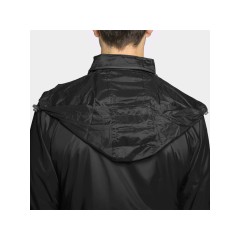 Ветровка из водонепроницаемой ткани:*воротник с карманом для капюшоны*рукав реглан*карманы на молнии*центральная молния*карман на спинке для складывания изделия*капюшон с эластическим шнуром и пластиковыми регуляторами*дышащая ткань внутри горловины*дышащая ткань внутри кармана спинки