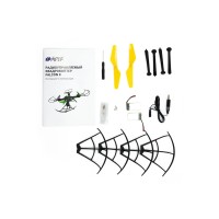 Комплектность квадрокоптер, ПУ, аккумулятор- 2шт, USB кабель, запасные лопасти, запасные винты, стойка шасси- 4шт, защита пропеллеров, отвертка, инструкция
