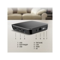 HIPER MEDIA ATV 8K Pro — это компактный медиаплеер для онлайн просмотра фильмов и сериалов, а также ТВ программ в разрешении 8К. Просто подсоедините его к проектору, монитору или телевизору с разъемом HDMI, чтобы превратить ваше устройство в Smart TV. Останется лишь подключить его к сети Wi-Fi (устройство поддерживает сети Wi-Fi 2.4 и 5GHz), чтобы начать наслаждаться контентом в 8К. MEDIA ATV 8K Pro поддерживает функцию беспроводной передачи изображения и звука со смартфона или планшета на большой экран, благодаря технологиям AirPlay и Miracast.Компактное устройство работает под управлением операционной системы Android TV. Программная оболочка оптимизирована, и 4 Гб встроенной RAM памяти достаточно для плавной работы интерфейса. За обработку видеопотока в разрешении 8к отвечает связка из мощного 4-ядерного процессора ARM Cortex-A55 и графического процессора ARM Mali-G31 с поддержкой OpenGL ES 3.2 и Vulkan 1.1. Аудио и видеоконтент сохраняется на встроенном накопителе объемом 32 Гб, а при необходимости память можно расширить за счет карт памяти формата microSDHC.Приложения и игры можно устанавливать из магазина Google Play или с помощью APK файлов.Устройство оборудовано следующими портами: одним HDMI 2.1, одним USB-A 3.0, одним USB-A 2.0, разъемом питания, LAN 100 Мбит/с, оптическим SPDIF и аналоговым AV выходом mini-jack [3,5 мм], и картридером формата microSDHC. Управление осуществляется с помощью виртуального пульта ДУ на экране смартфона или инфракрасного пульта ДУ, входящего в комплект.