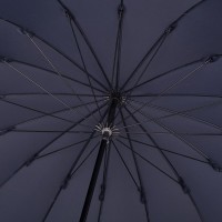 Солидный изысканный зонт с ручкой из дерева и 16 спицами. Большой купол легко укроет от дождя сразу двоих, а надежная конструкция выдержит даже сильный ветер.