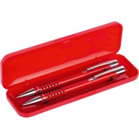 Набор письменных принадлежностей, состоящий из шариковой ручки с нажимным механизмом и механического карандаша, предлагается в компактном пластиковом футляре. На ручку, карандаш и футляр можно нанести логотип и подарить в качестве сувенира или небольшого презента клиенту компании.