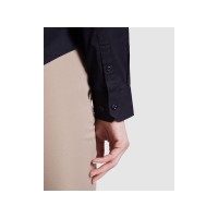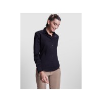Рубашка с длинным рукавом для женщин из эластичного материала· Проклеенный воротник.· Складка на спинке.· Две пуговицы на манжетах.· Кокетка на спинке.· Закругленный низ.