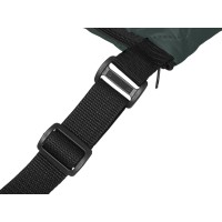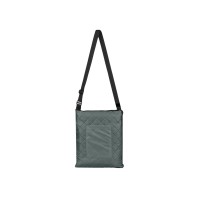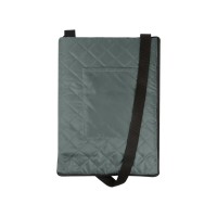 Двухсторонний плед с водоотталкивающим покрытием с одной стороны и мягким флисом с другой. Складывается в сумку на плечо и фиксируется с помощью молнии. В собранном виде имеет регулируемый по длине ремень для переноски и наружный карман для мелочей.