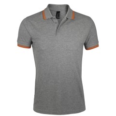 Рубашка поло мужская Pasadena Men 200 с контрастной отделкой, серый меланж с оранжевым