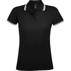 Рубашка поло женская Pasadena Women 200 с контрастной отделкой черная с белым, L