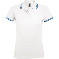 Рубашка поло женская Pasadena Women 200 с контрастной отделкой, белая с голубым