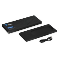 Беспроводное настольное зарядное устройство Glide выполнено из пластика с покрытием soft-touch. Кроме функции беспроводной зарядки имеет также 3 зарядных USB-разъема. Компактный органайзер имеет отсек для мелочи. После гравировки на устройстве вскрывается белый цвет подсветки, что позволяет сделать необычную и стильную персонализацию на этом гаджете.