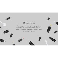 Комплектность аккумулятор, USB-кабель, войлочный чехол, сетевое зарядное устройство, 28 адаптеров для различных устройств и кабели MagSafe 1 и MagSafe 2, инструкция