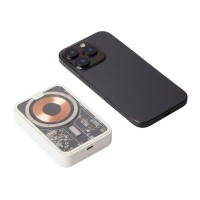 Беспроводной магнитный внешний аккумулятор MagnifIQ — технологичный и стильный power bank с эффектной прозрачной передней панелью, сквозь которую видны мощные магниты, индукционная катушка и электронная начинка. Ёмкость 10 000 мА·ч обеспечивает до 2–3 полных зарядов смартфона, а поддержка быстрой беспроводной зарядки до 15 Вт (с совместимостью QC/PD) делает процесс зарядки максимально быстрым и удобным. Двунаправленный USB-C порт позволяет как заряжать другие устройства, так и сам аккумулятор. Обе стороны корпуса подходят для нанесения логотипа: лицевая — через прозрачную панель, задняя — на приятное на ощупь soft-touch покрытие. Компактный, надёжный и сильный — идеальный технологичный продукт для продвижения и ежедневного использования. Поставляется в качественной упаковке с шубером, Двунаправленный кабель USB-C и кабель USB-A – USB-C в комплекте.• Прозрачная передняя панель — демонстрирует внутреннюю «начинку» и подчеркивает технологичность бренда.• Магнитная беспроводная зарядка 15 Вт • Ёмкость 10 000 мА·ч — хватает на несколько полных зарядов смартфона.• Двунаправленный USB-C — универсальность для зарядки и подзарядки.• Две зоны нанесения логотипа: на прозрачную панель спереди и на soft-touch покрытие сзади.• Сильные магниты обеспечивают надёжную фиксацию на совместимых устройствах.