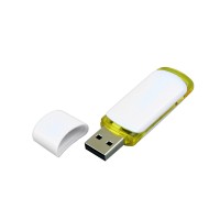 Описание Флешка промо прямоугольной классической формы с цветными вставками, 16 Гб, белый/желтый