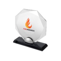 Прекрасный сувенир для вручения коллегам и партнерам за выдающиеся достижения. Оригинальная форма напоминает ограненный бриллиант. Основание выполнено из цветного стекла.Награда поставляется в собранном виде, для удобства персонализации Вы можете снять награду с подставки (прикручена на шуруп).