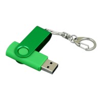 Описание Флешка промо поворотный механизм, с однотонным металлическим клипом, 32 Гб, зеленый