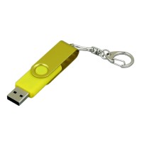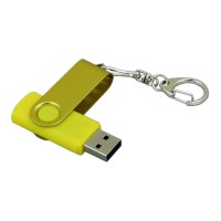 Флешка промо поворотный механизм, с однотонным металлическим клипом, 32 Гб, желтый