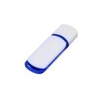 Флешка 3.0 промо прямоугольной классической формы с цветными вставками, 32 Гб, белый/синий