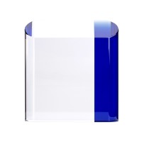 Награда выполнена из прозрачного стекла с синей полосой, которая дает красивые блики на всю поверхность награды. Станет отличным подарком для отличившихся сотрудников и партнеров компании.