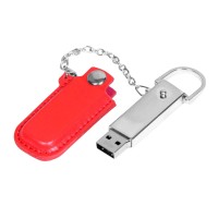 Описание Флешка в массивном корпусе с кожаным чехлом, 32 Гб, красный