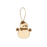 Оригинальное елочное украшение в виде снеговика. Подвеска выполнена из березовой фанеры и тонирована в коричневый цвет. Это елочное украшение – отличный вариант для экоелки. Не хотите использовать елочные игрушки из пластика или стекла? Деревянные сувениры из нашего каталога станут отличным украшением, которые создадут атмосферу уюта в вашем доме.