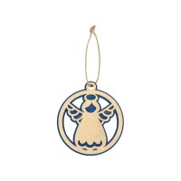 Елочная игрушка в виде главного символа праздника. новогоднего ангела – атмосферный и праздничный сувенир. Подвеска изготовлена из березовой фанеры и украшена тонировкой синего цвета, которая подчеркивает объемность игрушки и оттеняет текстуру неокрашенной части подвески. На одеждах ангела можно разместить ваши благопожелания или логотип.