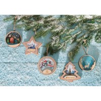 Новогодняя подвеска для елки станет прекрасным вариантом подарка: посмотрите, эти игрушки видно не только при свете дня, но и в темноте, ведь они могут светить сами! Игрушка с подсветкой выполнена из фанеры, фрагмент с изображением — напечатан на пропускающем свет материале. Подвеска сияет мягким разноцветным светом, подчеркивая пейзаж. Станет прекрасным вариантом для подарка, который будет радовать ваших адресатов долгие годы, каждую зиму красуясь на зеленых лапах елки.