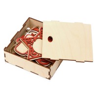 Набор из пяти новогодних подвесок упакован в коробку-футляр из березовой фанеры. Брендировать можно как сами игрушки, так и упаковку, причем помимо традиционной для фанеры гравировки предусмотрена возможность использования и других методов нанесения. Подвески будут напоминать о вашем бренде каждое рождество, создавая праздничное настроение, а футляр в дальнейшем может использоваться в качестве шкатулки для мелочей или для рукоделия.
