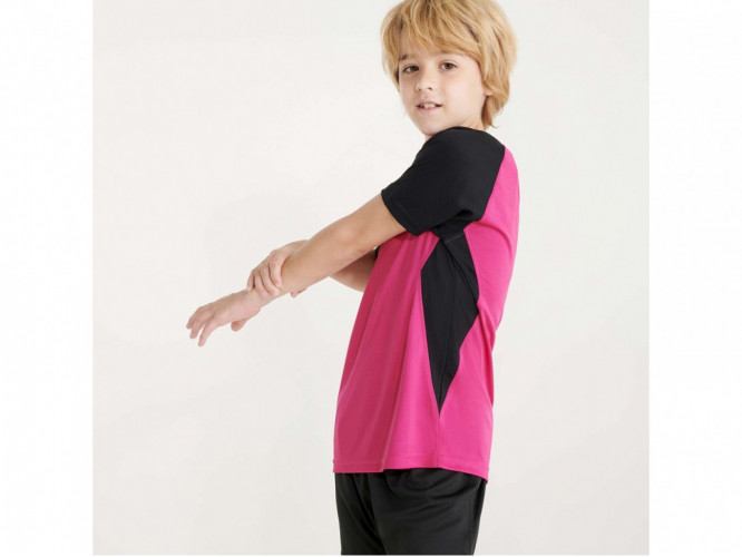 Спортивная футболка с коротким рукавом реглан. Круглый вырез горловины. Контрастные рукава и боковые вставки.