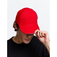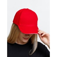 Модель бейсболки с 5-ю клиньями без лобового шва из плотного чесаного хлопка.