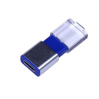 Описание USB-флешка промо на 32 Гб прямоугольной формы, выдвижной механизм, синий