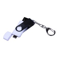 USB-флешка на 64 ГБ поворотный механизм, c двумя дополнительными разъемами MicroUSB и TypeC, белый