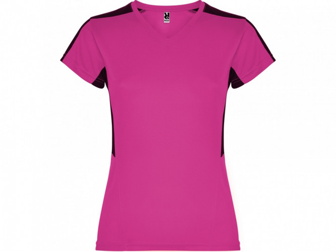Женская футболка с коротким рукавом. V-образная горловина. Комбинация из 2 полотен контрастного цвета: структурное полотно на полочке и дышащая 3D сетка на плечах и боках.