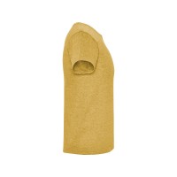 Футболка без боковых швов с коротким рукавом в меланжевом эффекте. Риб горловины 1х1 дополнительно укреплен двойной строчкой.