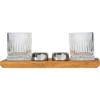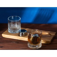 Комплектность деревянная подставка 28,5 х 12,9 х 2,1 см, бокал 210 мл- 2 шт, шайба для виски d5 х 2,8 см- 2 шт, упаковочная коробка