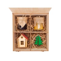 Оригинальный подарочный набор, в который входят: вишневое варенье и варенье из мандарина и белого шоколада, а также новогодние украшения для вашей елки. Украшения выполнены вручную из березовой фанеры и будут замечательным подарком для любителей handmade игрушек.Набор упакован в стильную коробку с разделителями и эстетически дополнен крафтовым бумажным наполнителем. Оригинальный и необычный подарок для любителей эко-тематики.