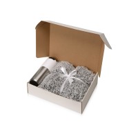Цвет плед- бело-черный, термокружка- белый/серебристый