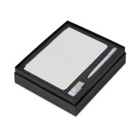 Подарочный набор «Notepeno» - это универсальный бизнес набор в современном стиле. С флеш-картой «Квебек» разъемом USB 2.0 все документы, презентации и договора будут под рукой. Блокнот «Notepeno» представлен в универсальном формате А5, отлично подойдет для любого мероприятия. Шариковая ручка «Plane» с фигурным корпусом soft-touch, который делает письмо невероятно комфортным. Набор упакован в дизайнерскую подарочную коробку из переплетного картона кашированного дизайнерской бумагой эфалин с ложементом из акустического поролона. Доступен в нескольких цветах.
