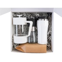 Подарочный набор с кофе, кружкой и френч-прессом "Бодрое утро" 2.0, белый