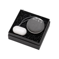 Описание Подарочный набор с колонкой и наушниками «Full Music», белый, серый